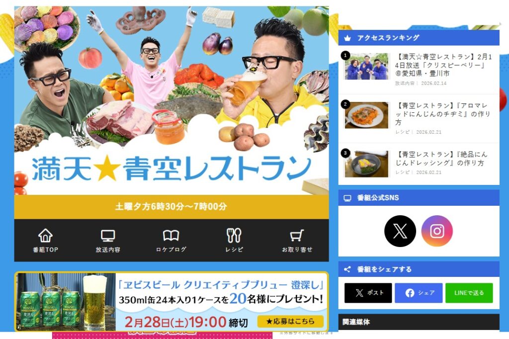 ※番組名の一部でもOK(例:ブランチ、ラヴィット)