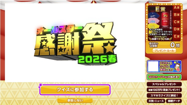オールスター感謝祭2026春 視聴者プレゼント