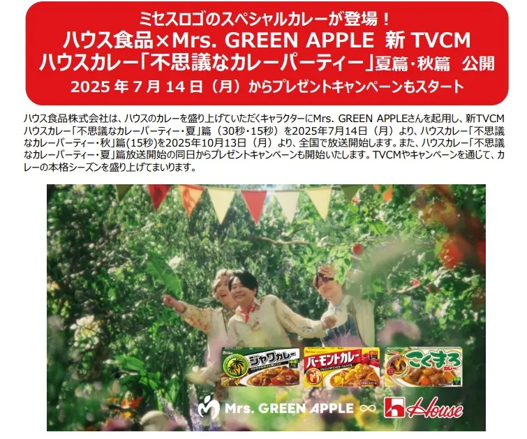ハウス食品のハウスカレーでは7月14日からMrs. GREEN APPLEとコラボる「楽しみ無限大 ミセス∞ハウスキャンペーン」をやります。 今回はミセスファンなので、買って応募... -