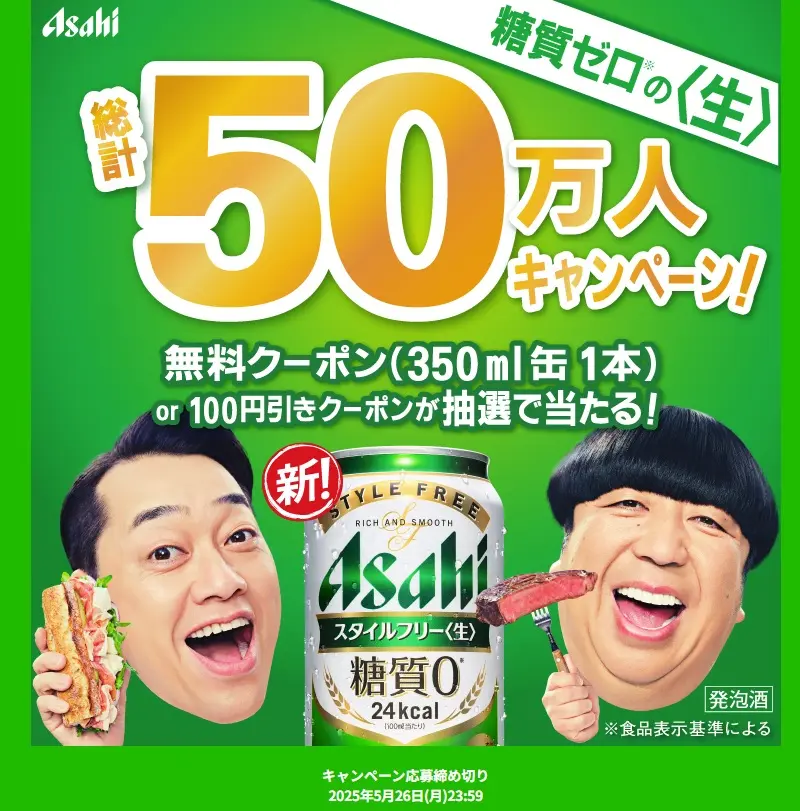 アサヒ スタイルフリー<生> コンビニ無料引換クーポン25万名プレゼントキャンペーン