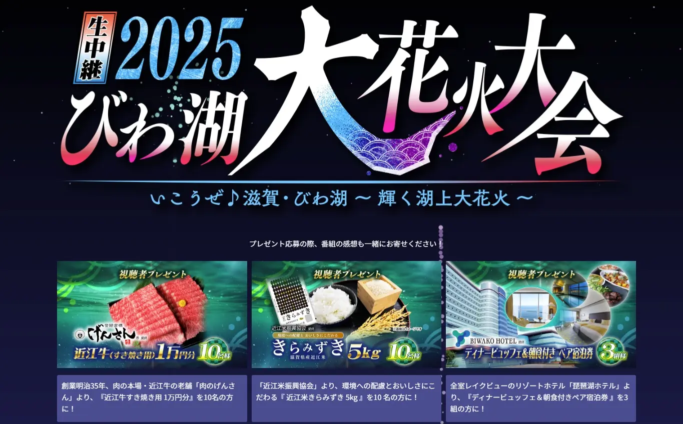 びわ湖放送、BS11、KBS京都で8月8日19時00分から放送の「びわ湖大花火大会2025」では視聴者プレゼントをやっています。