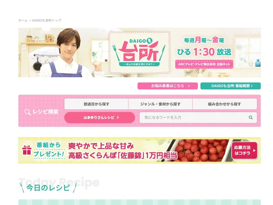 ABCテレビ、テレビ朝日系列で毎週月曜から金曜の13時30分から放送の「DAIGOも台所~きょうの献立 何にする?」では視聴者プレゼントをやっています。 5月19日から告知さ...
