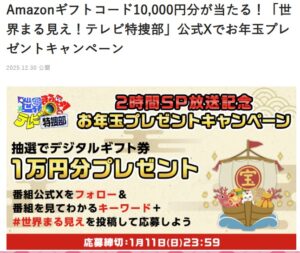 日本テレビ「歌唱王 ~全日本歌唱力選手権~」の視聴者プレゼント(公式Xキャンペーン)情報をまとめました。