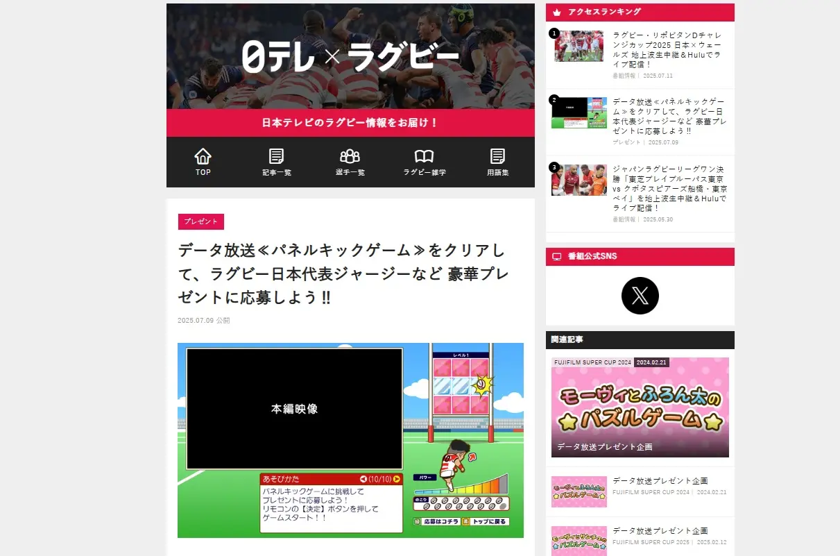 日テレ系で7月12日14時30分から放送のラグビー「リポビタンDチャレンジカップ2025」では視聴者プレゼントをやっています。