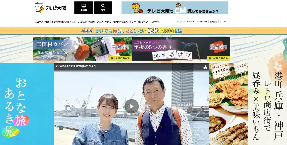 テレビ大阪で毎週土曜18時30分から放送の「おとな旅あるき旅」では視聴者プレゼントをやっています。 賞品は主に番組で紹介されたお酒やお土産です。 応募はWEB応募です...