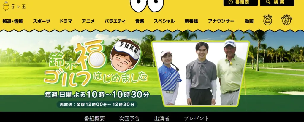テレ玉で毎週日曜10時00分から放送の「鈴木福 ゴルフはじめました」では視聴者プレゼントをやっています。 賞品はモアンジーズのメンズポロまたはレディースフレンチス... -