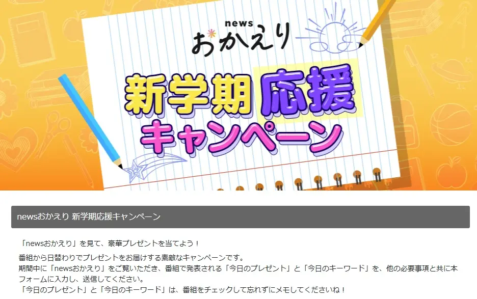 朝日放送テレビで毎週月曜から金曜15時40分から放送の「news おかえり」では視聴者プレゼントをやっています。 今回は「newsおかえり 新学期応援キャンペーン」として、... -