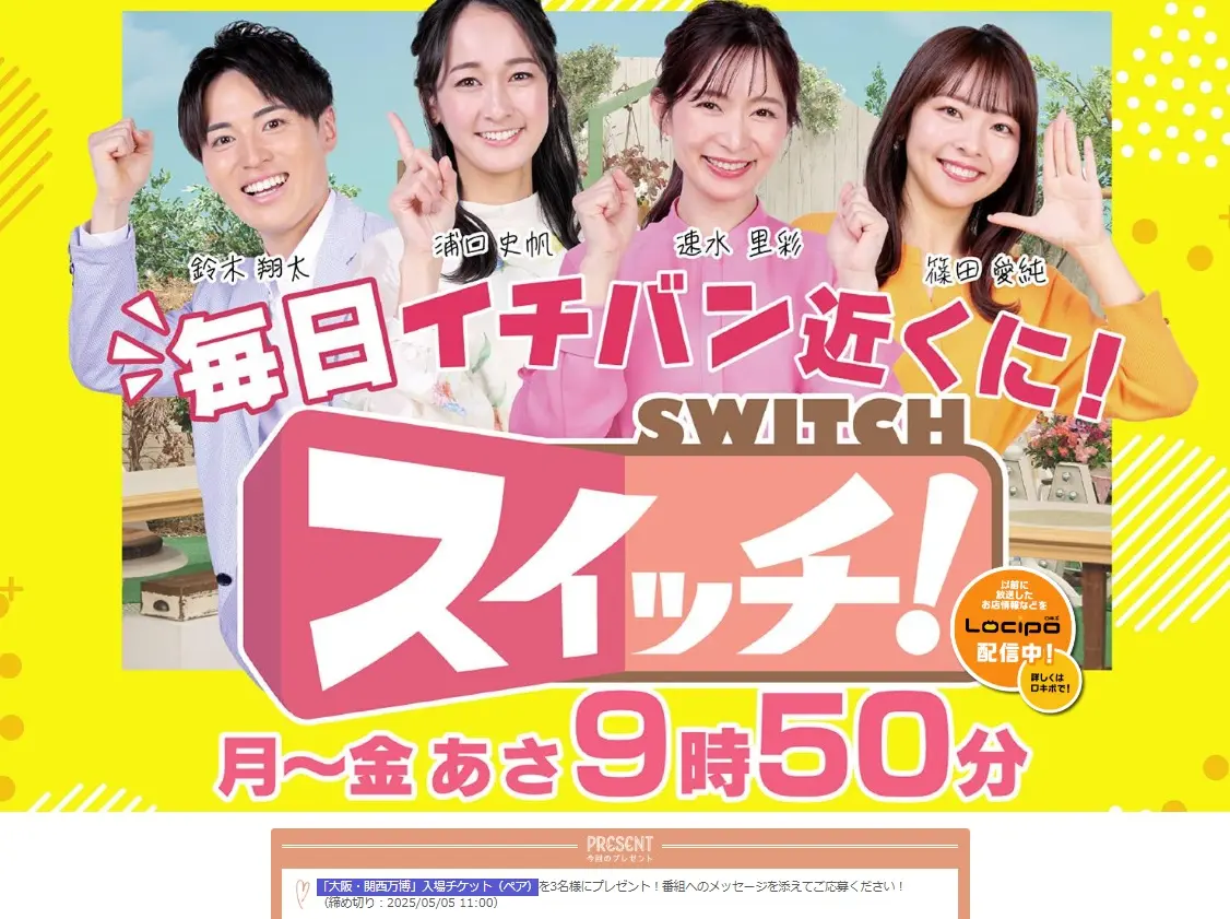 月曜から金曜、9時50分から東海テレビで毎週放送の「スイッチ!」では視聴者プレゼントやってます🎁