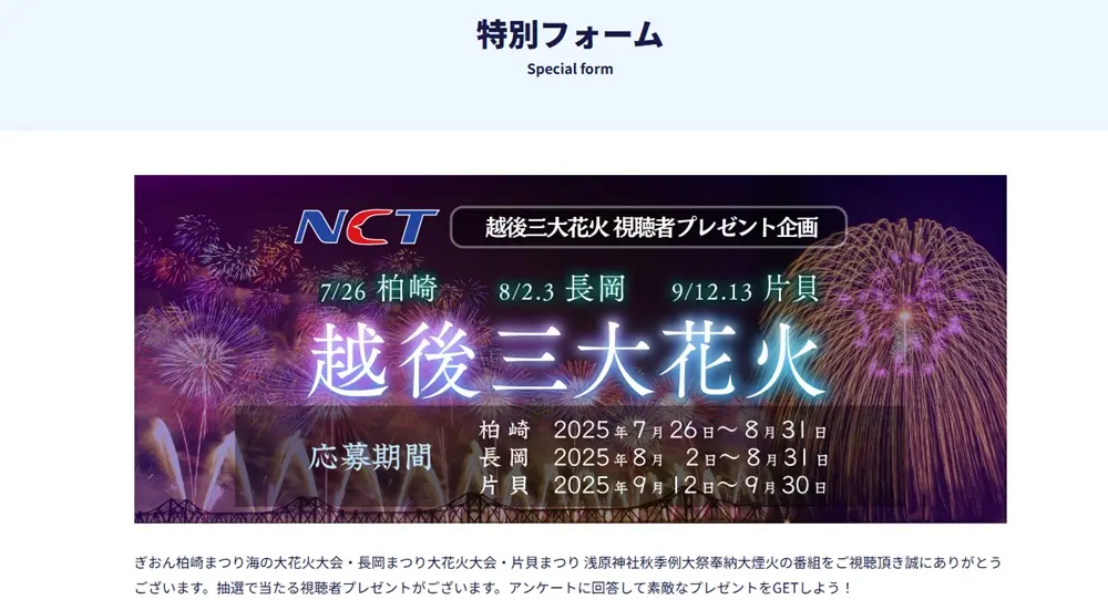 NCT 越後三大花火 視聴者プレゼント