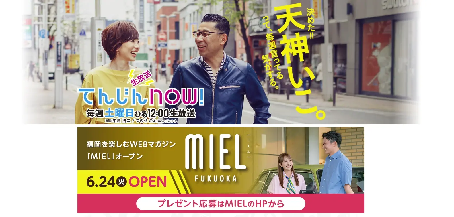 視聴者プレゼントの応募方法が2025年6月28日から変更になって、「webてんじん」から福岡を楽しむWebマガジン「MIEL」経由での応募に変わりました。