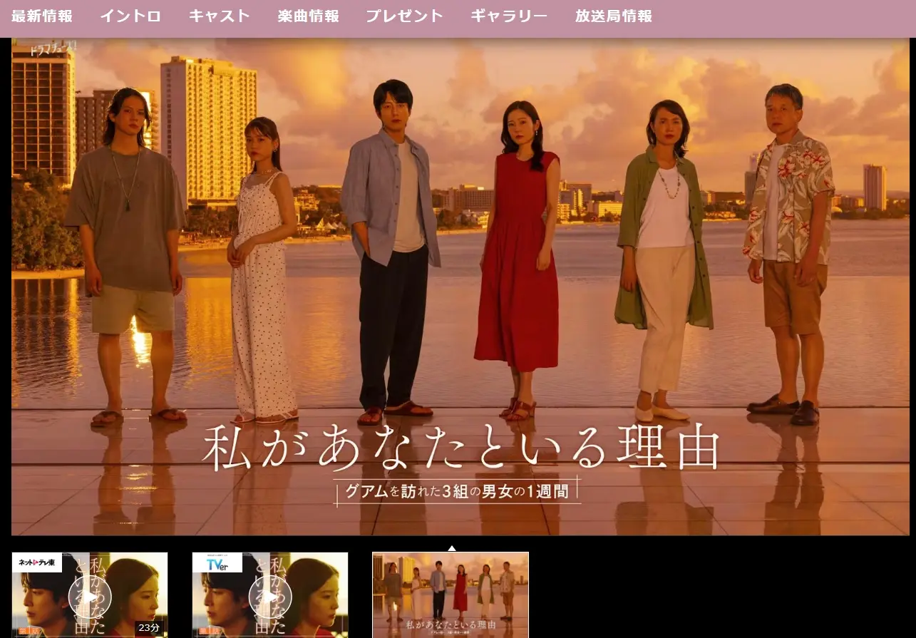 テレビ東京で毎週火曜の深夜24時30分から放送の「私があなたといる理由~グアムを訪れた3組の男女の1週間~」では視聴者プレゼントをやっています。
